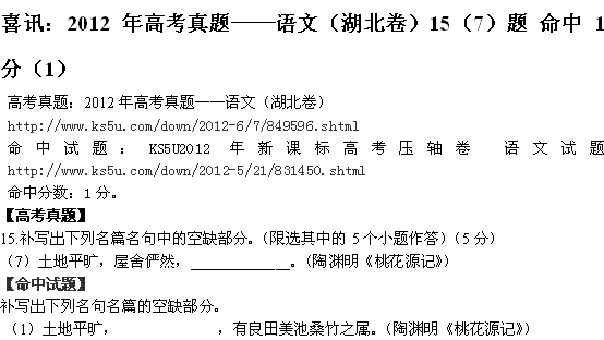 喜讯:2012年高考真题——语文(湖北卷)15(7)题 命中1分(1)