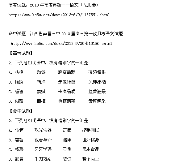 喜讯:2013年高考真题——语文(湖北卷)2题命中3分(8)