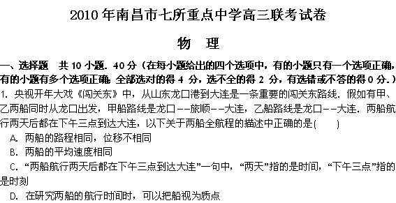 谷歌:江西省南昌七校2011届高三联考(物理)