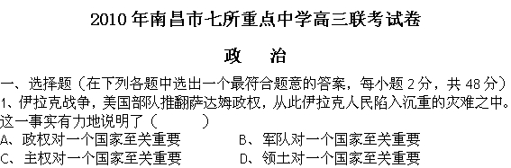 谷歌:江西省南昌七校2011届高三联考(政治)