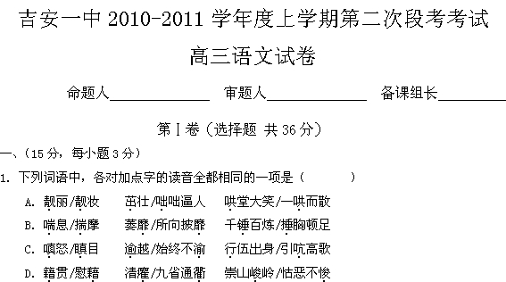 江西省吉安一中2011届高三第二次段考(语文)