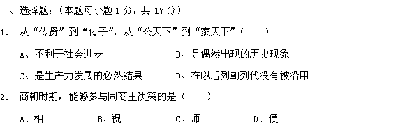 百度:河南郑州市盛同学校10-11学年高一第一次月考(历史)