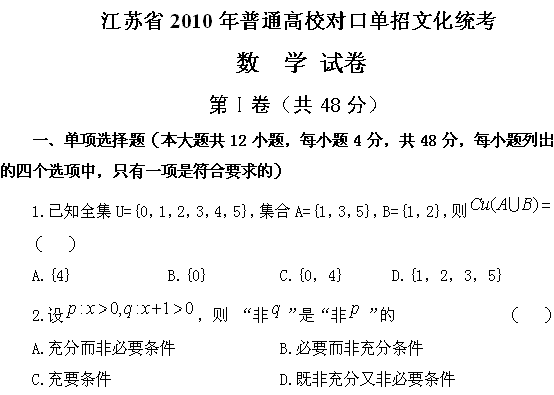 百度:江苏省2010年普通高校对口单招文化统考