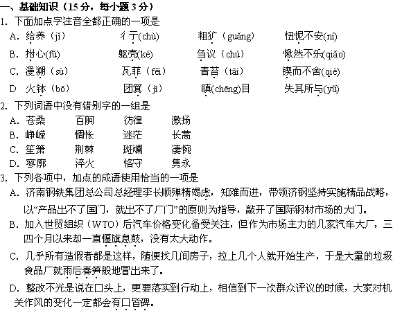 百度:吉林省东北师大附中10-11学年高一第一次月考(语文)