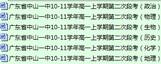 百度:广东省中山一中10-11学年高一上学期第二次段考(6科6份)