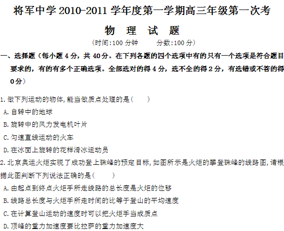 谷歌:江西省兴国县将军中学2011届高三第一次月考(物理)缺答案