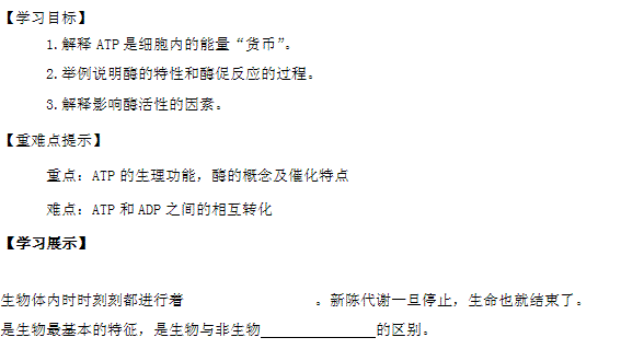 谷歌:生物:4.1《ATP和酶》学案(苏教版必修1)