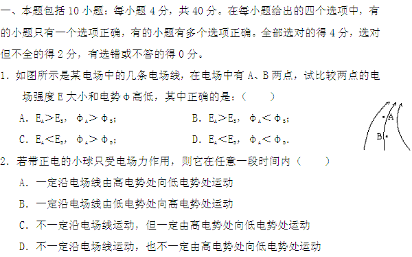 百度:江西省会昌中学10-11学年高二上学期第一次月考(物理)