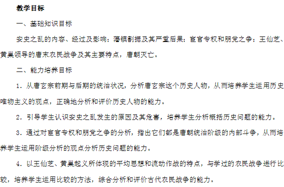 高三历史:4.3《唐朝后期的政局》教案(大纲版)