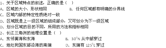 百度:安徽望江县鸦滩中学10-11学年高二上学期第二次月考(地理)