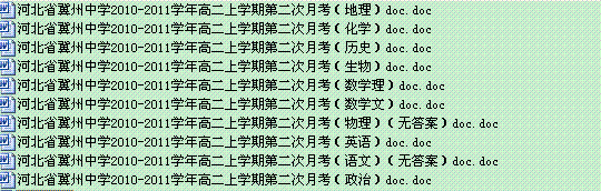 百度:河北省冀州中学2010-2011学年高二上学期第二次月考(9科10份)(答案不全)