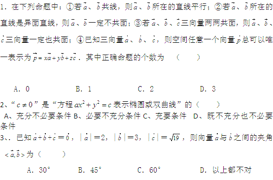 百度:河北省冀州中学2010-2011学年高二上学期第二次月考(数学理)