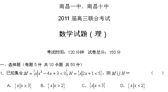 江西省南昌一中、南昌十中2011届高三联合考试(数学理)