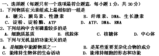 百度:浙江省杭州市西湖高级中学10-11学年高二11月月考生物试题