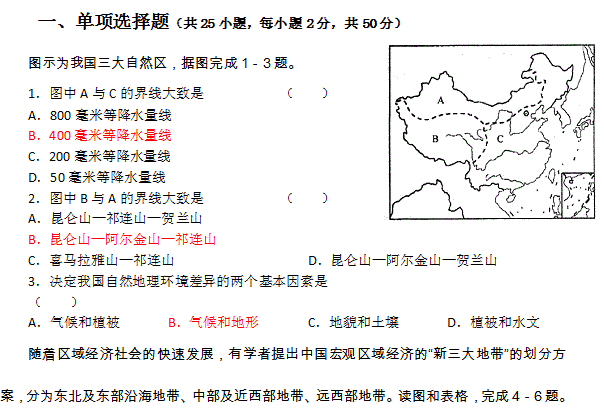 百度:江西省高安中学10-11学年高二上学期第一次月考(地理)