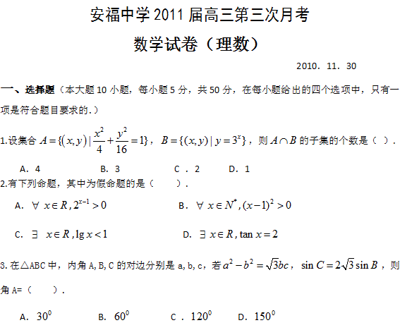 百度:江西省安福中学2011届高三第三次月考(理数)