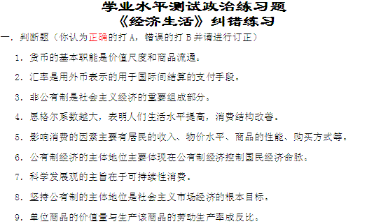 百度:学业水平测试政治练习题《经济生活》易错练习