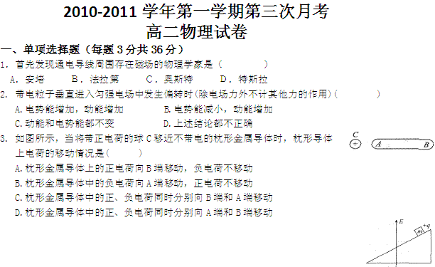 百度:浙江省台州市书生中学10-11学年高二上学期第三次月考物理试题(缺答案)