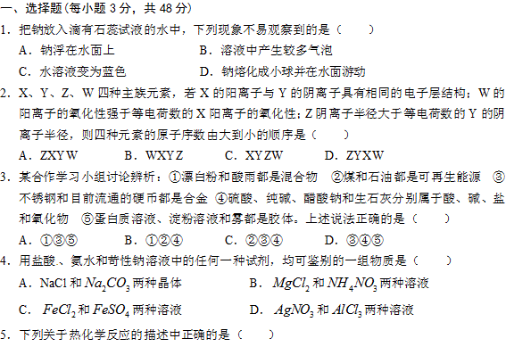 谷歌:江西师大附中、临川一中2011届高三12月联考(化学)