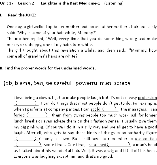 英语:unit 17lesson 2 laughter is the best medicine 学案(北师大版选修模块6)