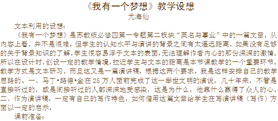 语文:4.4《我有一个梦想》教学设想(苏教版必修四)