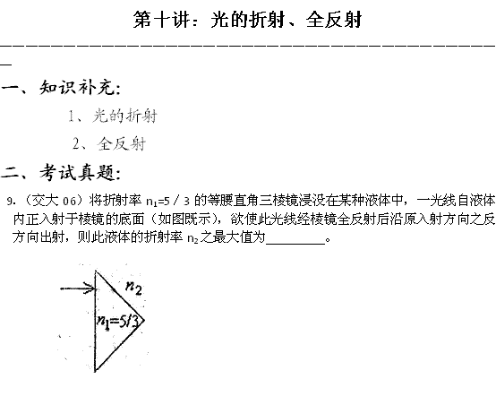 百度:华师大二附中自主招生物理应试辅导第10讲:光的折射、全反射