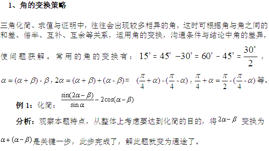 谷歌:高考数学复习点拨:三角变换的若干策略