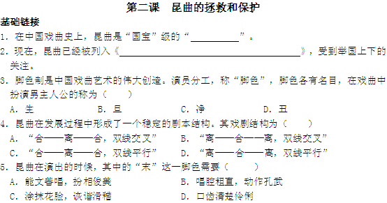 百度:历史:8.2《昆曲的拯救和保护》练习题(新人教版选修六)