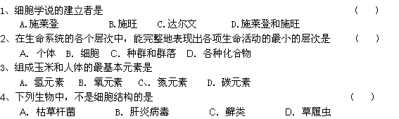 百度:四川省江油市太白中学10-11学年高一上学期期中考试(生物)(答案不全)