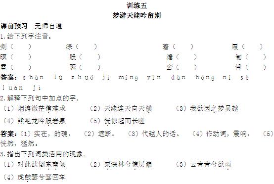 语文大纲版第三册课课练:《梦游天姥吟留别》