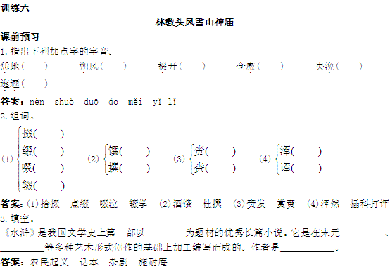 百度:语文大纲版第四册课课练:《林教头风雪山神庙》