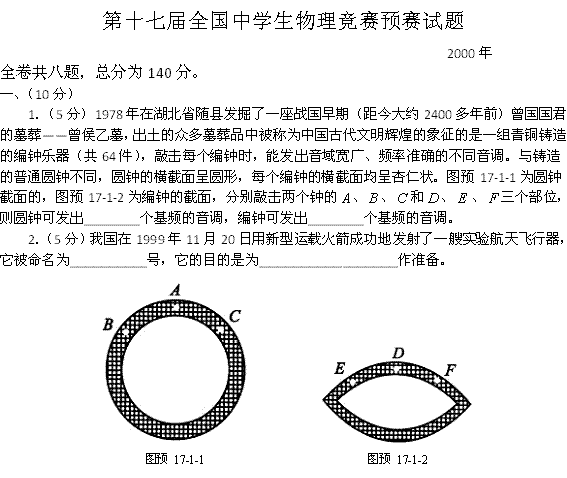 百度:第17届全国中学生物理竞赛预赛试题(含解析)