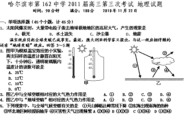 谷歌:黑龙江省哈尔滨市第162中学2011届高三第三次模拟(地理)