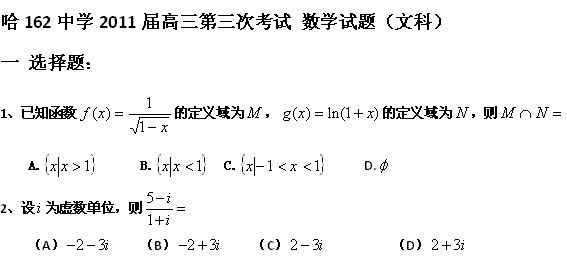 百度:黑龙江省哈尔滨市第162中学2011届高三第三次模拟(数学文)