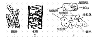 解析:由题图知1、3为原核细胞,2为低等植物细胞,4为动物细胞,所以纤维素酶只可分解图2中的细胞壁,水绵细胞同时具有中心体和叶绿体,蓝藻能进行光合作用,但无叶绿体,4细胞无叶绿体。