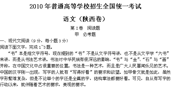 谷歌:2010年高考试题——语文(陕西卷)解析版