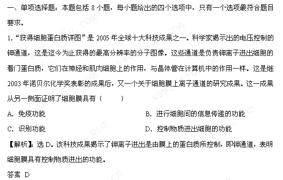 百度:青海高考生物一轮复习自测题(二)