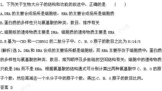 百度:青海高考生物一轮复习自测题(一)