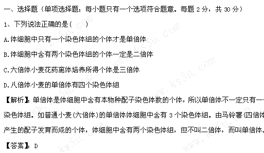 百度:青海高考生物一轮复习自测题(八)