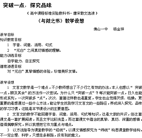 百度:语文:《与微之书》教学设想--突破一点,探究品味