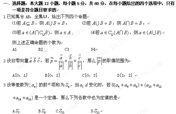 百度:高中数学综合训练系列试题(8)