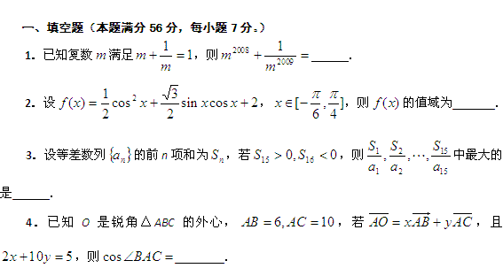 百度:2009年全国高中数学联合竞赛预赛(湖北赛区)