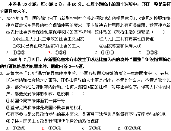 百度:2010山东菏泽一中高一《政治生活》诊断性练习