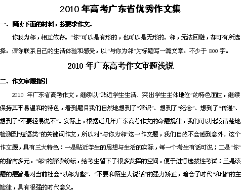 2010年高考广东省优秀作文集