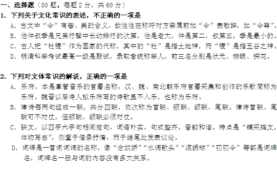 广东省广州市2010年高中“古诗文积累与阅读竞赛”初赛试题