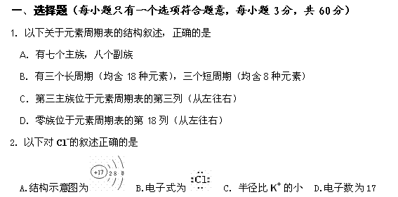 百度:宣城市水阳高级中学09-10学年高一(下)第一次月考(化学)缺答案