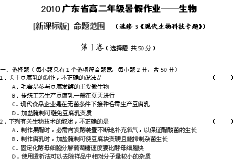 谷歌:2010广东省高二年级暑假作业——生物