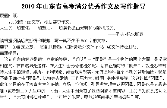 百度:2010高考全国各地满分作文及点评:山东