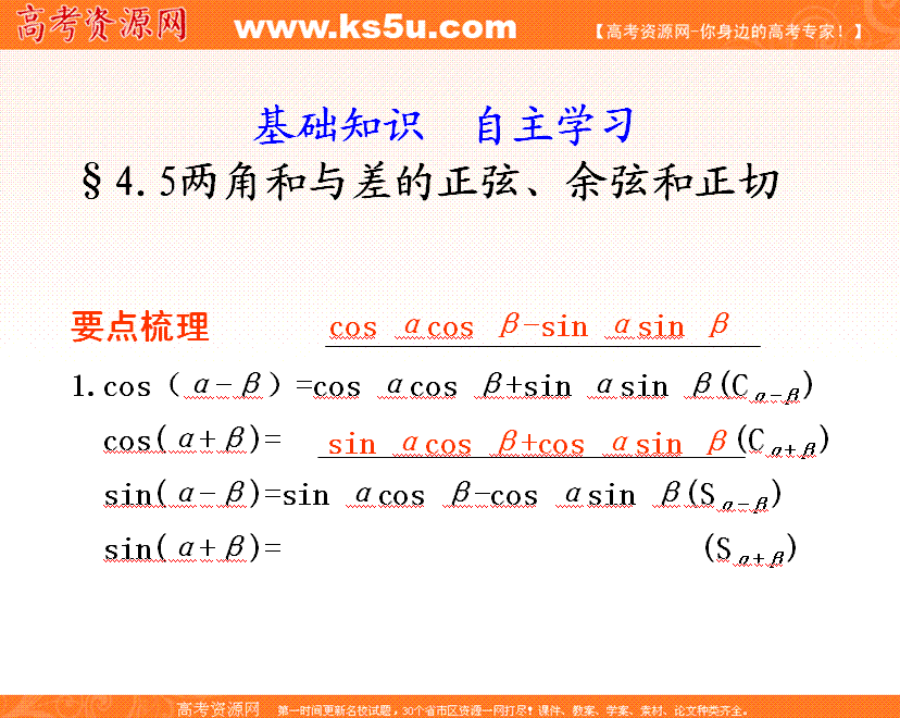百度:数学一轮复习专辑:§4.5两角和与差的正弦、余弦和正切