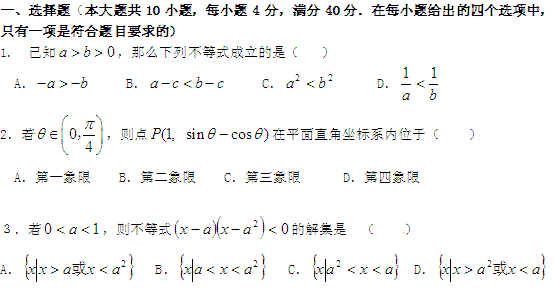 有道:浙江省温州市省一级重点中学09-10学年高一下学期期末试题 数学(温州八校联考)